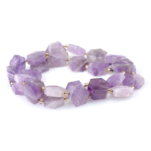 Dog Teeth Amethyst 12x13mm Faceted Hexagon - 15-16 Inch