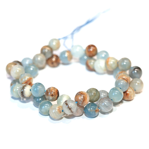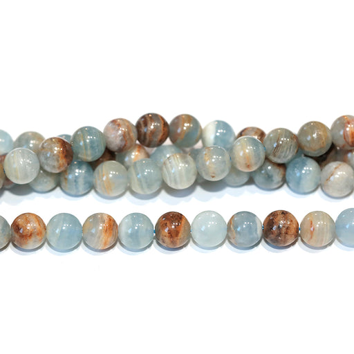 Lemurian Aquatine Calcite 6mm Round- 15-16 Inch (Blue Onyx)