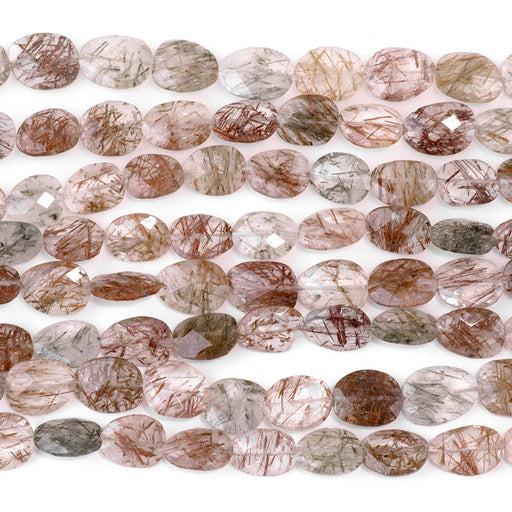 Multi Rutilated Quartz 9x11-12x14mm Faceted Irregular Oval - 8 Inch