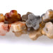 Crazy Lace Agate is a banded Chalcedony that naturally occurs as golden brown with layers of pink, red and gray in swirling circular patterns. It has been called “the Laughter Stone” or “Happy Lace” for its believed power to elevate thoughts and promote optimism. Agate has been discovered with artifacts from cultures of the Neolithic Period, also known as the Stone Age, occuring 10,000 years ago.
