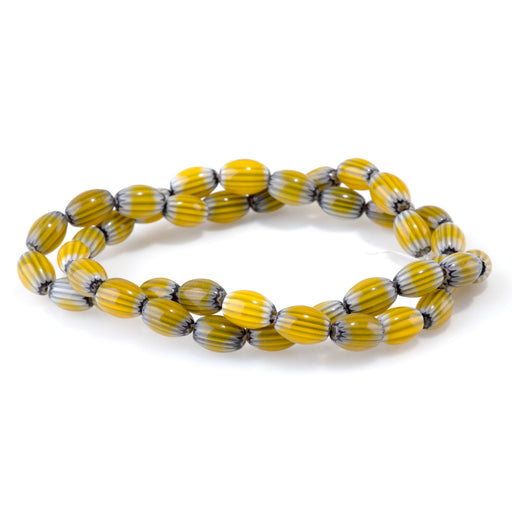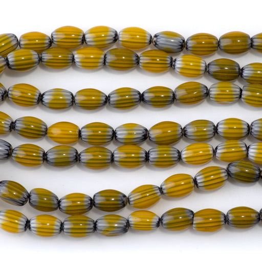 Glass Melon 6x8mm Yellow & Black Barrel - 14-15 Inch