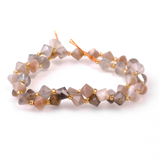 Golden Gray Moonstone 8mm Faceted Bicone - 15-16 Inch
