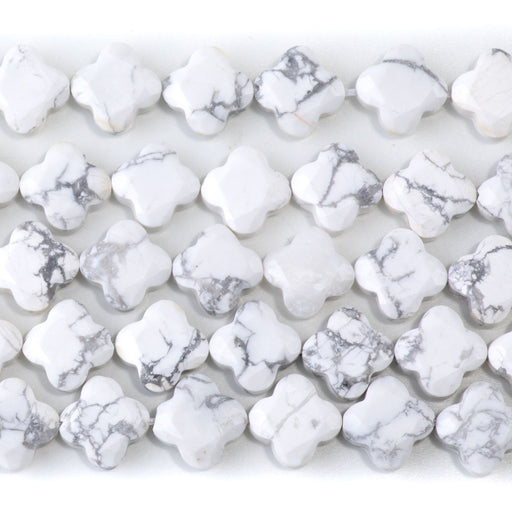 White Howlite 13mm Faceted Clover - 15-16 Inch