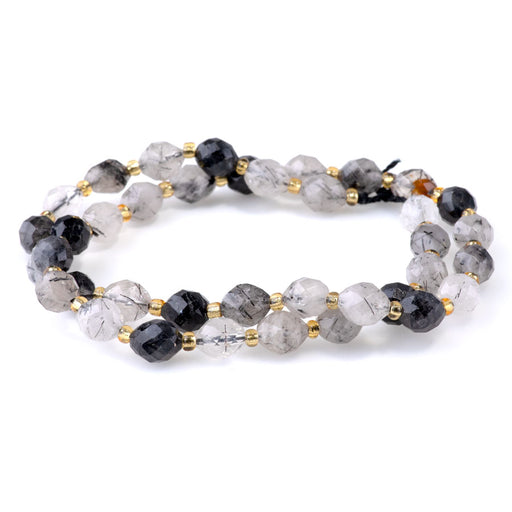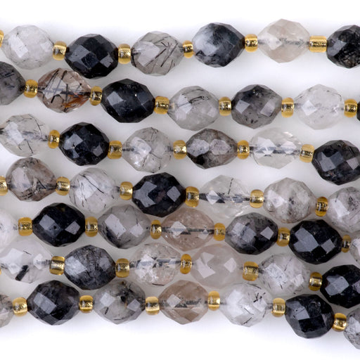 Black Rutilated Quartz 7x8mm Faceted Rice Bead - 15-16 Inch