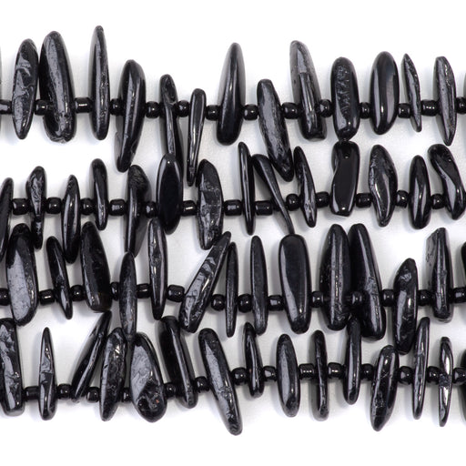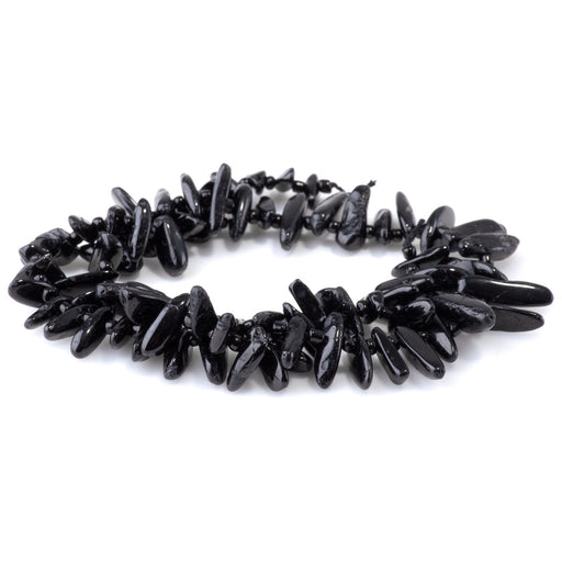 Black Tourmaline 5x10-20mm Top Drill Teeth - 15-16-Inch