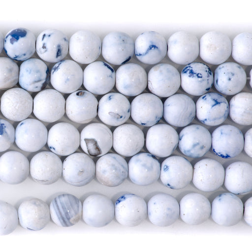 Blue White Porcelain Agate 6mm Round - 15-16 Inch