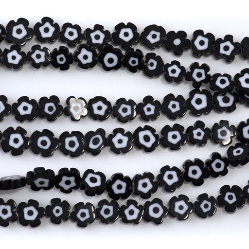 Glass 8mm Black Flat Flower - 14-15 Inch