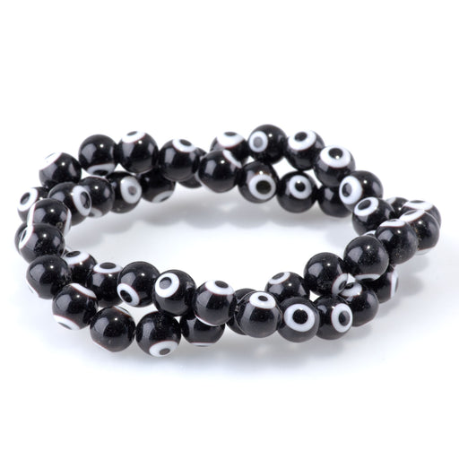 Glass Evil Eye Black 8mm Round - 14-15 Inch