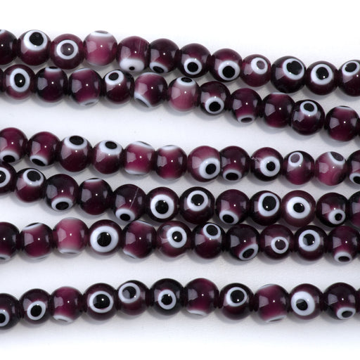 Glass Evil Eye Purple 8mm Round - 14-15 Inch