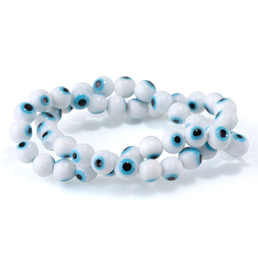 Glass Evil Eye White with Sky Blue 8mm Round - 14-15 Inch
