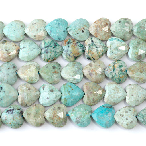 Peruvian Turquoise (Chrysocolla) 14mm Faceted Heart A Grade - 15-16 Inch