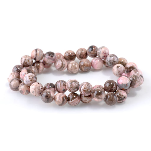 Pink Rhodochrosite With Matrix 8mm Round - 15-16 Inch