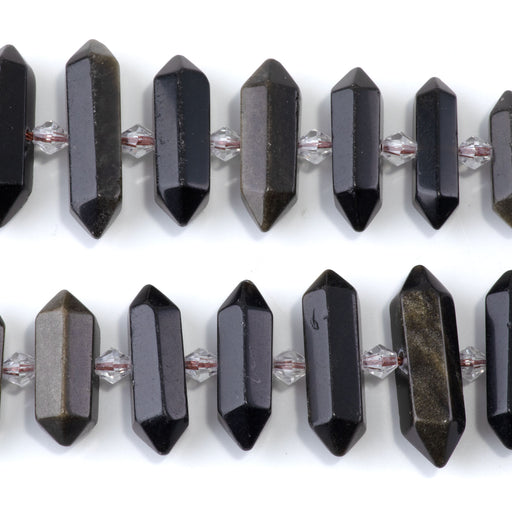 Black Obsidian 12x25-40mm Graduated Side Drilled Points - 15-16 Inch