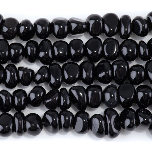 Black Obsidian 8x10-9x13mm Side Drilled Pebble - 15-16 Inch