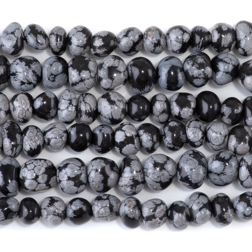 Snowflake Obsidian 8x10-9x13mm Side Drilled Pebble - 15-16 Inch