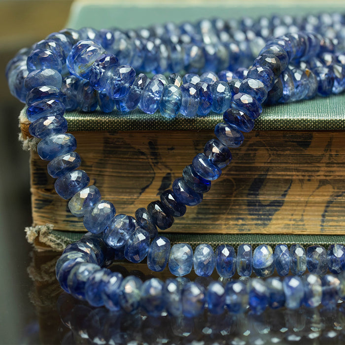 Blue Nepal Kyanite 3x6-5x8mm Grauated Faceted Rondelle Necklace - 15-16 Inch
