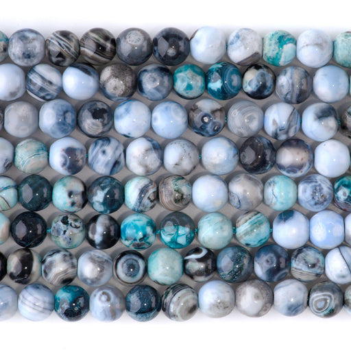Blue White Porcelain Agate 6mm Round - 15-16 Inch