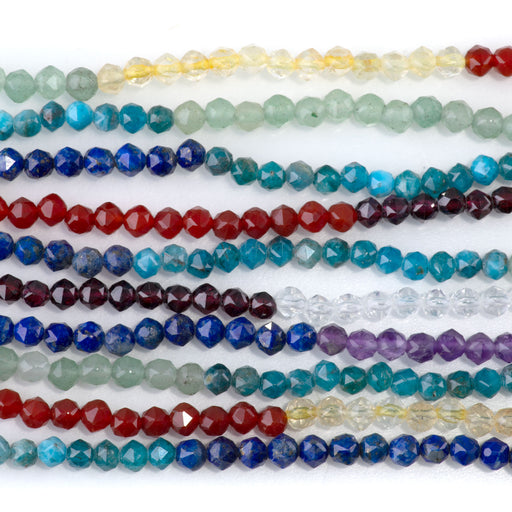 Choose from rounds, faceted rondelles, energy prisms, or other shapes—all cut from premium rough so the colors stay vivid and the polish stays bright through daily wear. Use a full strand for ready-made chakra jewelry, or break it apart to highlight individual centers in custom pieces.
