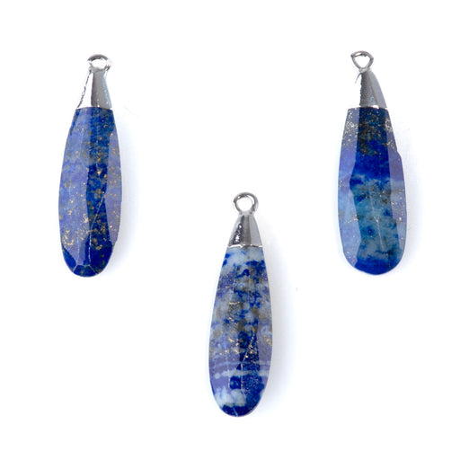 Lapis 9x32mm Faceted Tear Drop Silver Plated Pendant