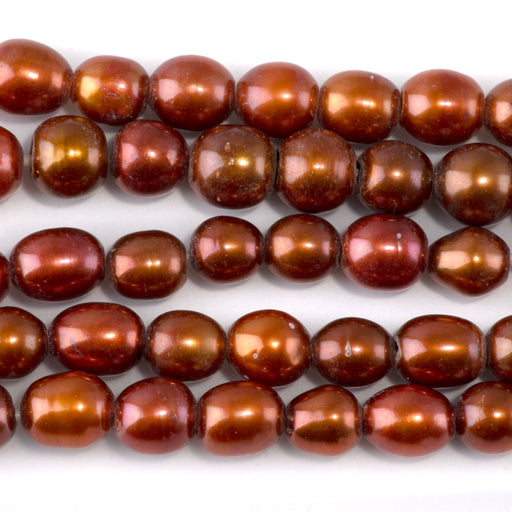 Freshwater Pearl 9mm Copper Rice Beads with 2mm Large Hole - 8 Inch