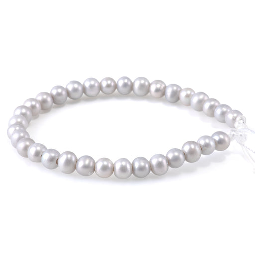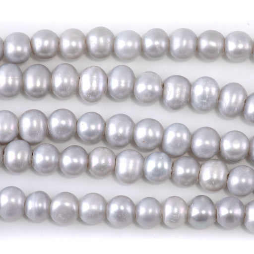 Freshwater Pearl 6mm Silver Potato Beads with 2mm Large Hole - 8 Inch