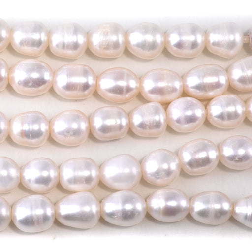 Freshwater Pearl 10mm White Rice Beads with 2mm Large Hole - 8 Inch