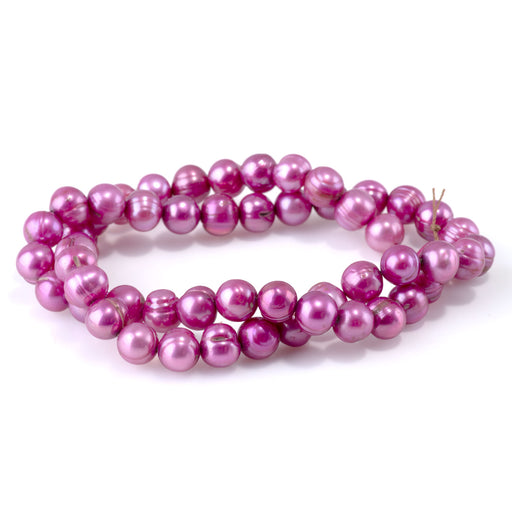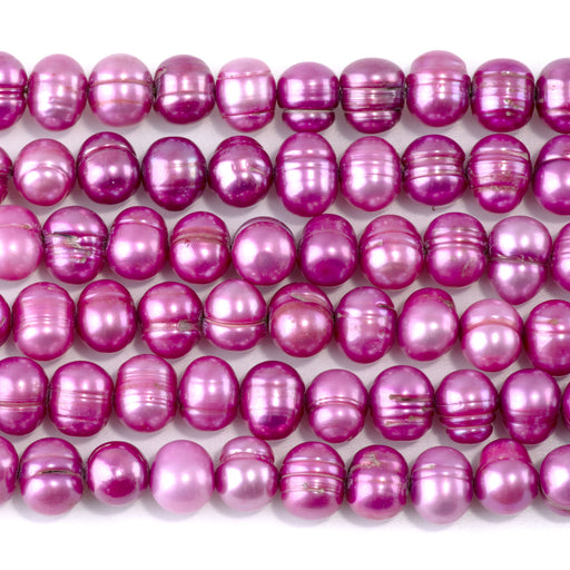 Freshwater Pearl 7-10mm Hot Pink Potato Beads - 15-16 Inch