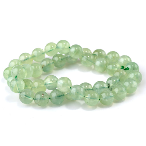 Prehnite, with its unique translucent green hue and glassy luster, is a silicate mineral often found in the cavities of igneous rocks. Composed typically of calcium and aluminum, it forms well-defined crystals that enhance its appeal in bead making. Often showing a pearlescent glimmer, Prehnite is favored for its both aesthetic and mineralogical intrigue.