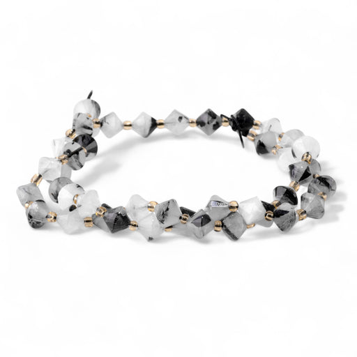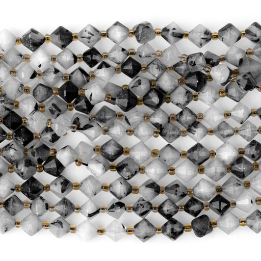 Black Rutilated Quartz 8mm Faceted Bicone - 15-16 Inch