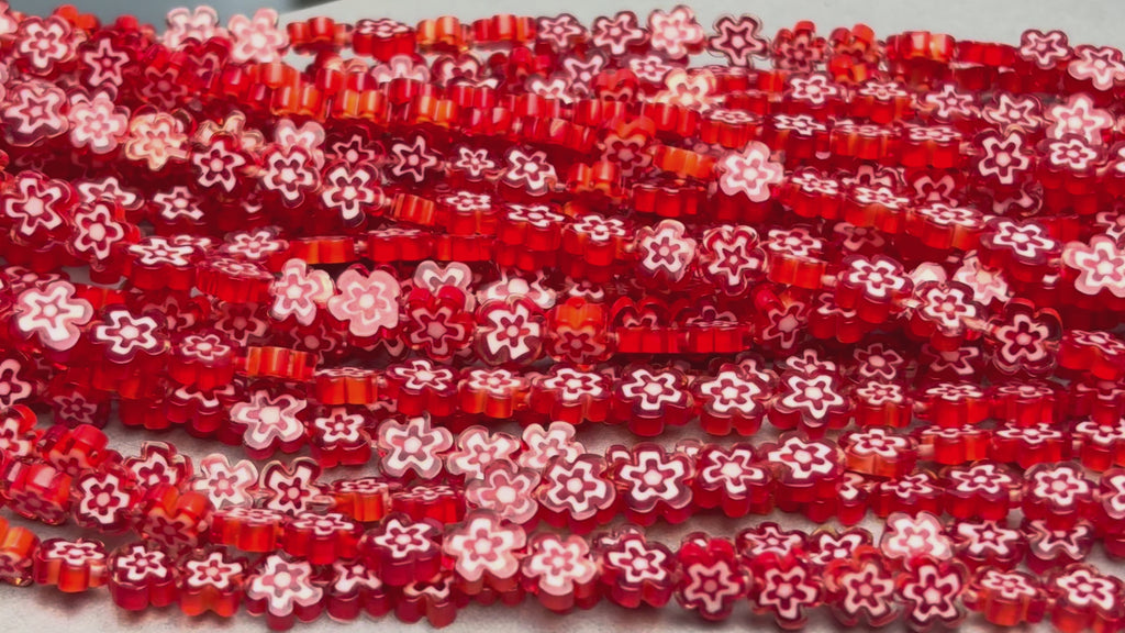 Glass 8mm Red Flat Flower - 14-15 Inch
