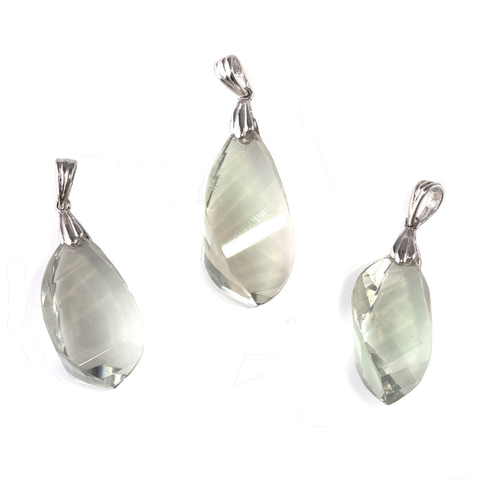 Green Amethyst 26-37mm Faceted Nugget Pendant with .925 Sterling Silver Bail