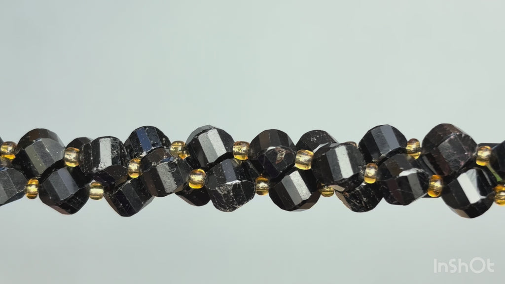 Black Tourmaline 7x8mm Faceted Swirl Oval - 15-16 Inch