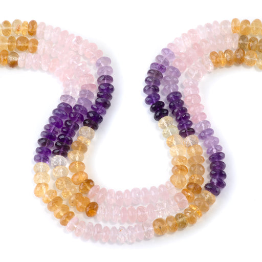 View full detailsMixed Stone (Citrine/Rose Quartz/Amethyst) 4-9mm Banded Faceted Rondelle - 18 Inch