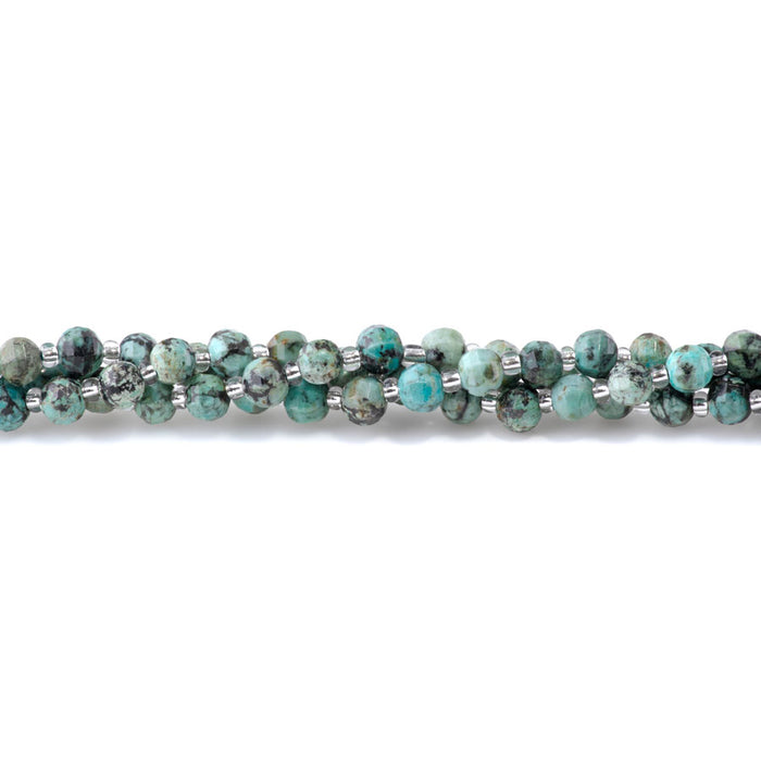 African Turquoise is not actually Turquoise, but rather a speckled teal Jasper found in Africa and often treated to simulate the beautiful blue to green associated with true Turquoise. It contains inclusions such as copper and iron, creating veins and mottling that ranges in color from rust to black. Considered a stone of transformation and evolution, it is believed to awaken those who carry it to their highest spiritual purpose.