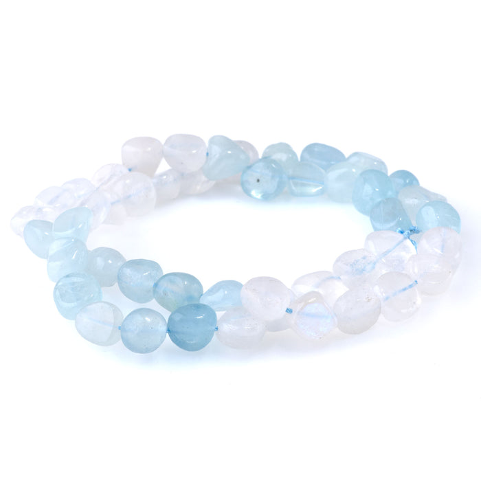 Banded Aquamarine and Blue Moonstone 6-8mm Pebble - 15-16 Inch