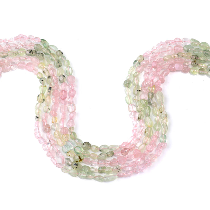 Banded Prehnite and Rose Quartz 6-8mm Pebble - 15-16 Inch