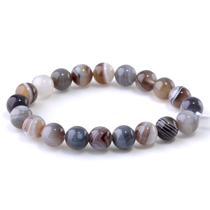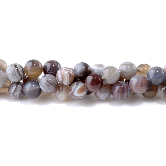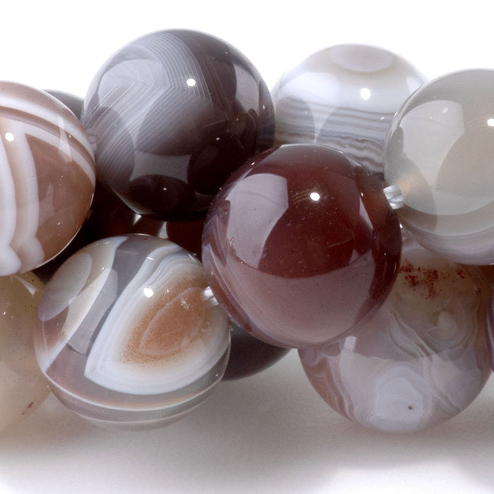 Botswana Agate displays highly defined parallel banding, usually in white on hues of brown, gray, pink, tan, apricot and purplish red. Botswana Agate was formed nearly 187 million years ago by lava flowing in waves from long faults in the earth. This lava rolled across the landscape, depositing layer upon layer of Quartz silicate to create the banding and patterns now prized in Botswana Agate.