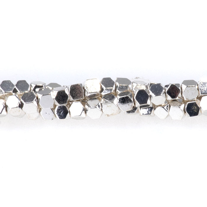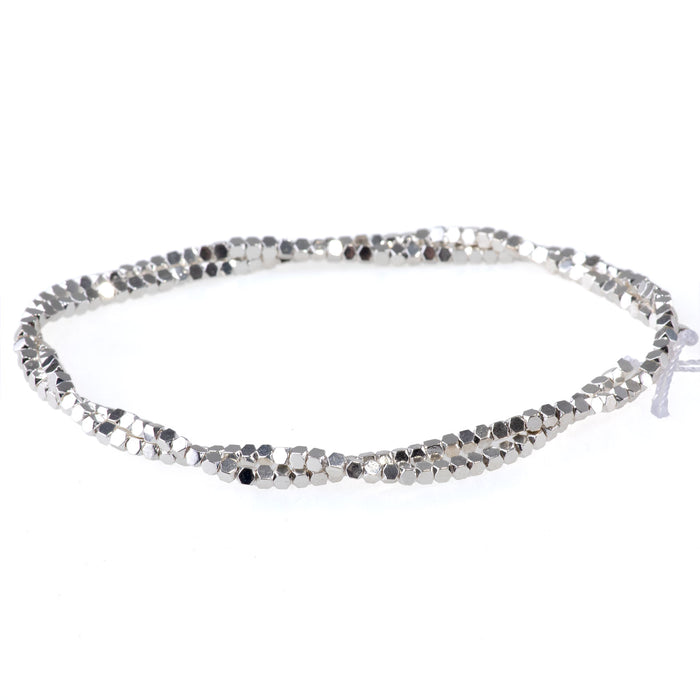 Hematite White Silver Plated 2mm Cut Cube 15-16 Inch