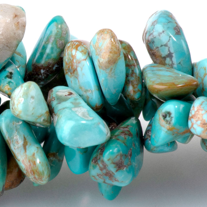 Hubei Turquoise 10-14mm Blue/Green Top Drill Chip - 15-16 Inch
