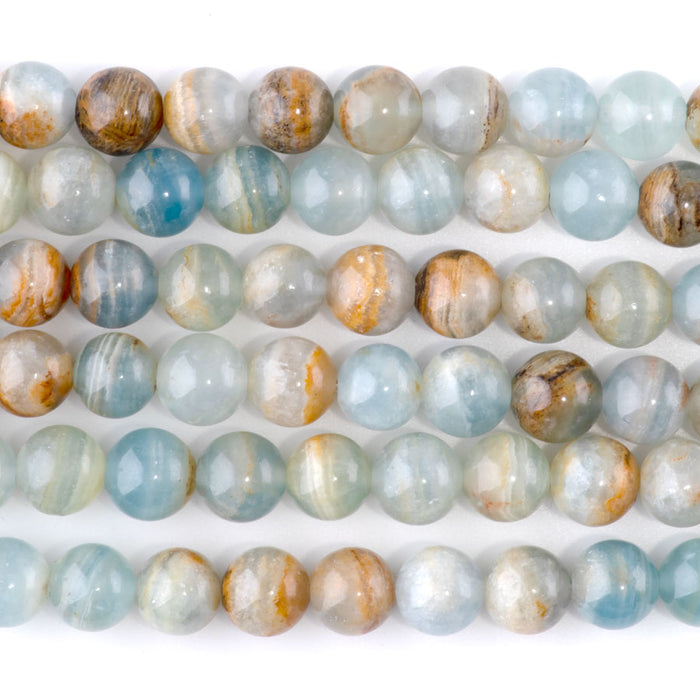 Lemurian Aquatine Calcite 8mm Round - 8-Inch
