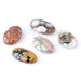 Ocean Jasper is a commercial name for Orbicular Jasper, a variety of Jasper containing variably colored spherical patterns. It forms when Quartz and Feldspar crystallize in radial aggregates within other silica to rich stones, Rhyolite or Tuff. Ocean Jasper is believed to be linked to the lost city of Atlantis and to hold mystic knowledge.