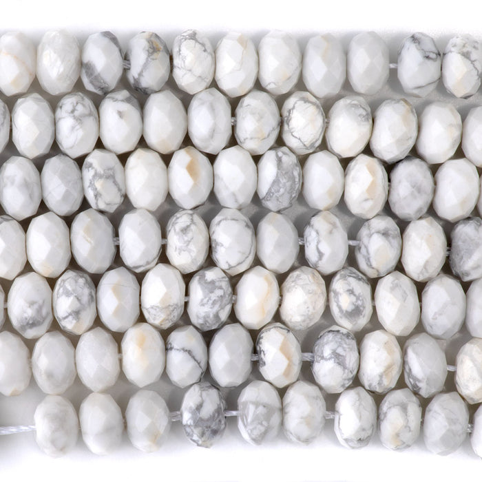 White Howlite 8mm Faceted Rondelle - 8-Inch